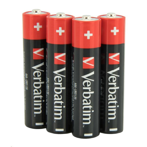 Batéria jednorázová alkalická, tužková, AAA, 1.5V, Verbatim, fólia, 4-pack, 49500