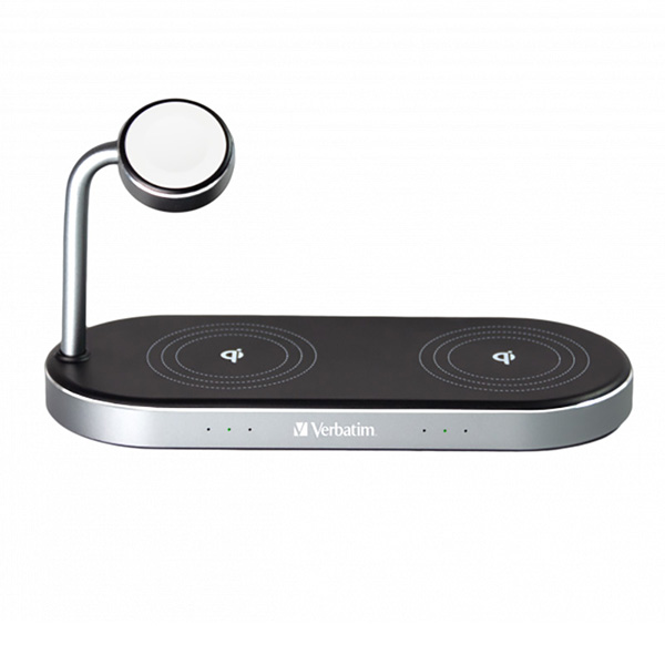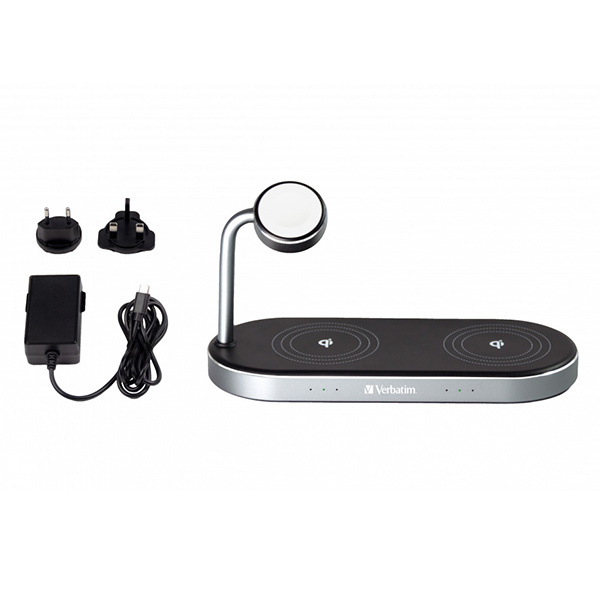 Verbatim, Duálna nabíjacia podložka 3 v 1, pre dva telefóny iPhone a hodinky Apple Watch, čierna, 9V, 35W, Certifikácia MFi a Qi,