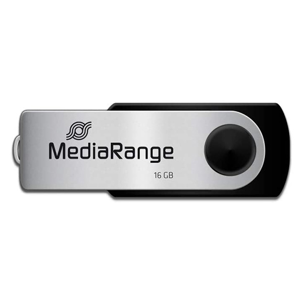 MediaRange USB flash disk, USB USB 2.0, 16GB, čierny, MR910, USB A, swivel