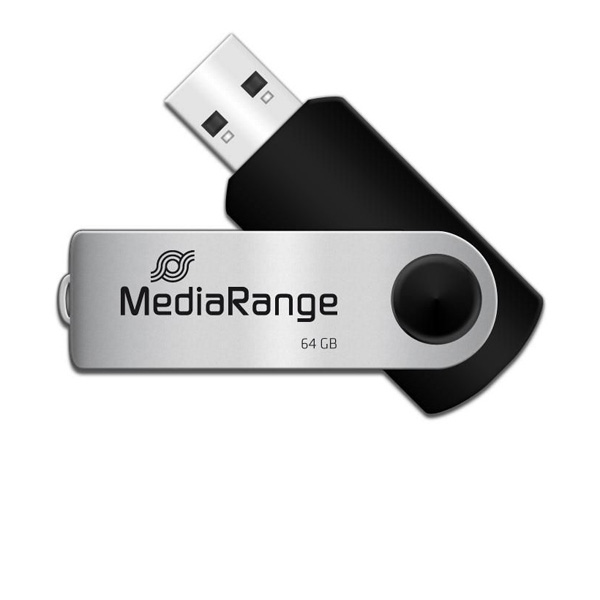 MediaRange USB flash disk, USB USB 2.0, 64GB, čierny, MR912, USB A, swivel