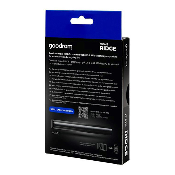 SSD Externá Goodram Move Ridge, SSDR-GMRE-02T-K0, 2000GB, čierny, USB-C 3.2