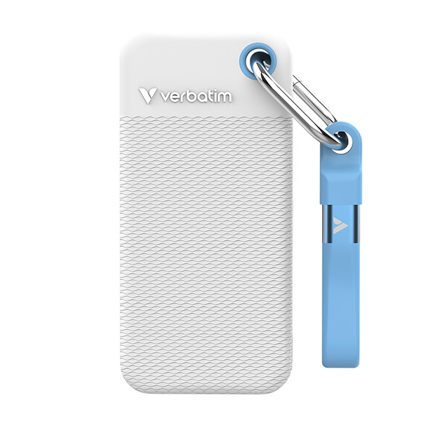 SSD Externá Verbatim Pocket SSD colour edition, 32320, 1000GB, biely, obsahuje 2x gumový kryt (biely a svetlo modrý), USB C
