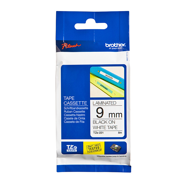 Brother originál páska do tlačiarne štítkov, Brother, TZE-221, čierny tlač/biely podklad, laminovaná, 8m, 9mm