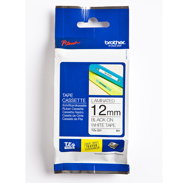 Brother originál páska do tlačiarne štítkov, Brother, TZE-231, čierny tlač/biely podklad, laminovaná, 8m, 12mm