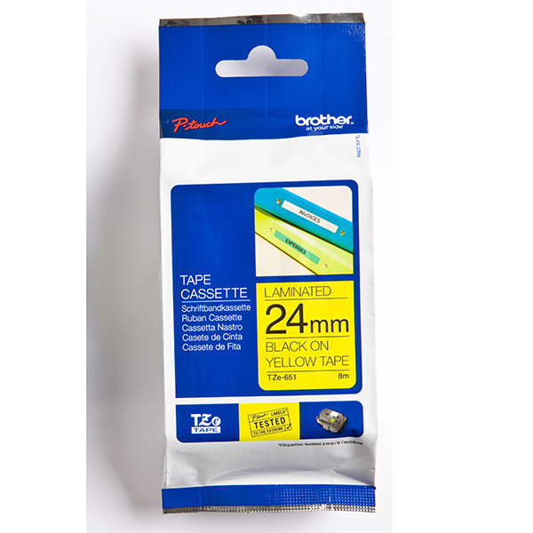 Brother originál páska do tlačiarne štítkov, Brother, TZE-651, čierny tlač/žltý podklad, laminovaná, 8m, 24mm