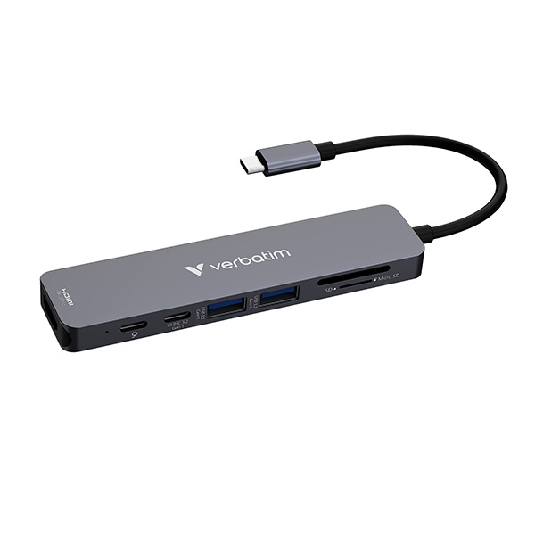 USB-C viac portový rozbočovač Essentials 7-port, 32158, šedý, dĺžka kábla 18cm, Verbatim, USB-C 3.2 Gen 1, USB-C PD, 2 x USB-A 3.2