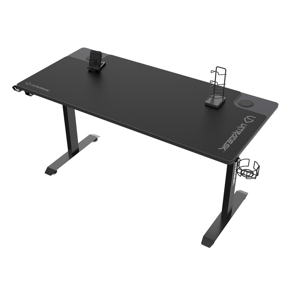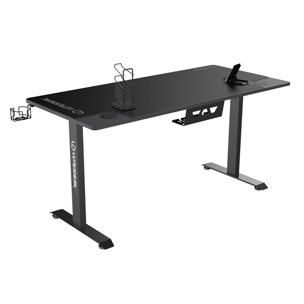 ULTRADESK Herný stôl MOMENTUM - Black, 152,5x70 cm, 75,5 cm, s XXL podložkou pod myš, držiak slúchadiel, nápojov, mobila, poškoden