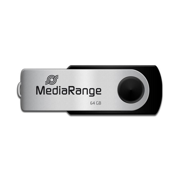 MediaRange USB flash disk, USB USB 2.0, 64GB, čierny, MR912, USB A, swivel