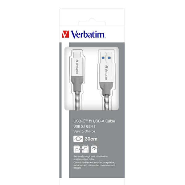 Kábel USB (2.0), USB A M- USB C M, 0.3m, reversible, strieborný, Verbatim