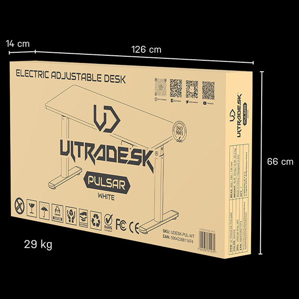 Celý stôl ULTRADESK PULSAR je dodávaný iba v jedinom balení, ktoré je navyše špeciálne chránené proti možnému poškodeniu. Vďaka tomuto sa k Vám tento stôl dostane v perfektnom stave.