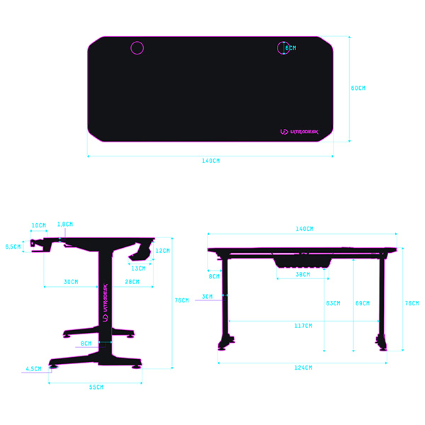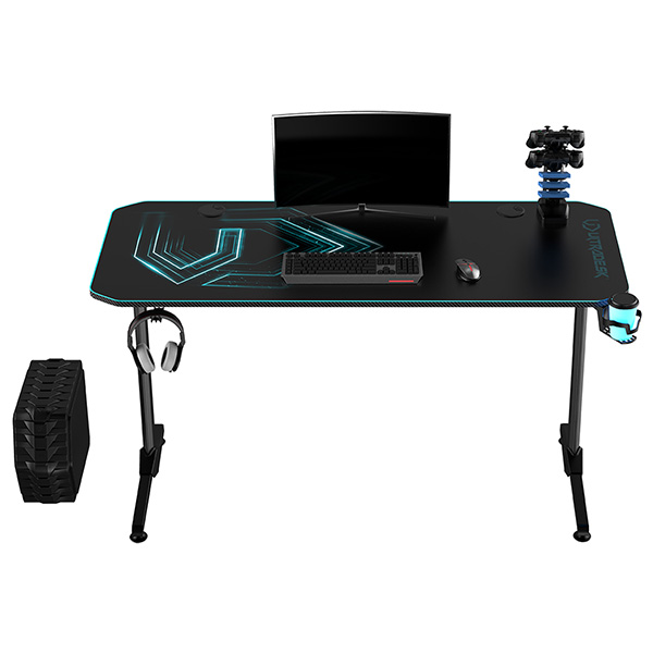 ULTRADESK Herný stôl FRAG - BLUE V3, 140x60 cm, 76 cm, s XXL podložkou pod myš, s ultradesk BEAM, držiak slúchadiel aj nápojov, po