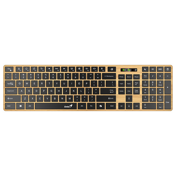 Genius SlimStar 7250BT predstavuje modernú bezdrôtovú klávesnicu s elegantným designom inšpirovaným severským borovicovým drevom. Ponúka duálne pripojenie prostredníctvom Bluetooth 5.0 alebo 2,4GHz bezdrôtovej technológie s dosahom až 10 metrov. Klávesnica je ideálna pre širokú škálu zariadení vrátane stolových počítačov, notebookov, mobilných telefónov, tabletov aj chytrých televízorov.